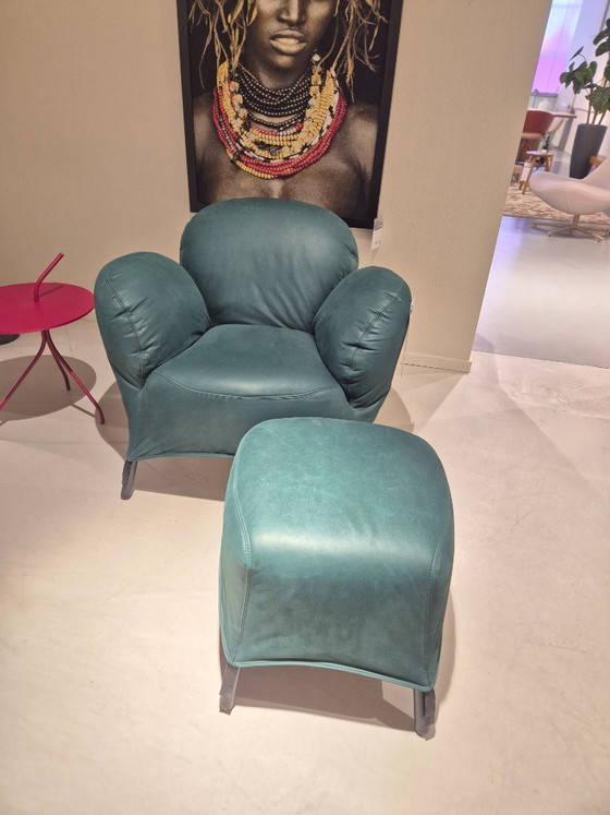 Le fauteuil Bobo avec son repose-pieds, signé Label Vandenberg, est un bel exemple de design moderne et de confort. Revêtu d'un élégant cuir Elite vert, ce fauteuil et son repose-pieds offrent un espace de détente idéal après une longue journée. Le cuir haut de gamme garantit non seulement une apparence luxueuse, mais aussi une grande durabilité et un confort optimal. Les pieds robustes en métal confèrent au fauteuil une allure contemporaine et une excellente stabilité. Ce fauteuil et son repose-pieds s'intègrent parfaitement dans tout salon ou bureau moderne. Contactez-nous pour plus d'informations ou pour ajouter ce magnifique fauteuil à votre intérieur.