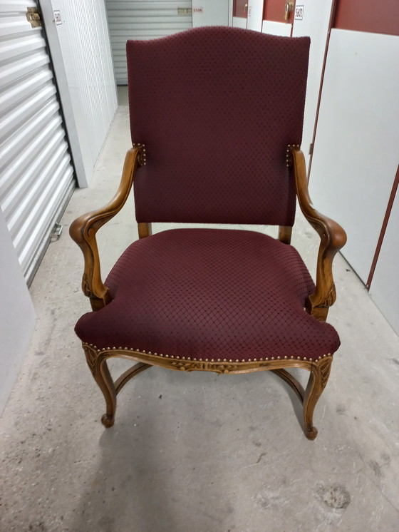 Ce fauteuil classique a été retapissé il y a quelques années. Le fauteuil et la tapisserie sont comme neufs. La couleur est rouge foncé. Je me débarrasse de ce fauteuil car j'ai commencé à vivre plus petit.