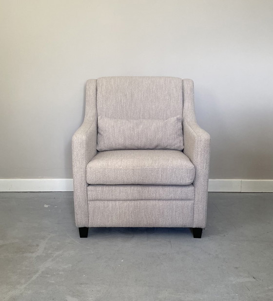 Fauteuil classique équipé d'un coussin d'assise en fuseau et d'un coussin lombaire supplémentaire. Tissu : alpine natural Ce modèle d'exposition peut être vendu pour eur 400,-. Nouveau prix eur 949,-.