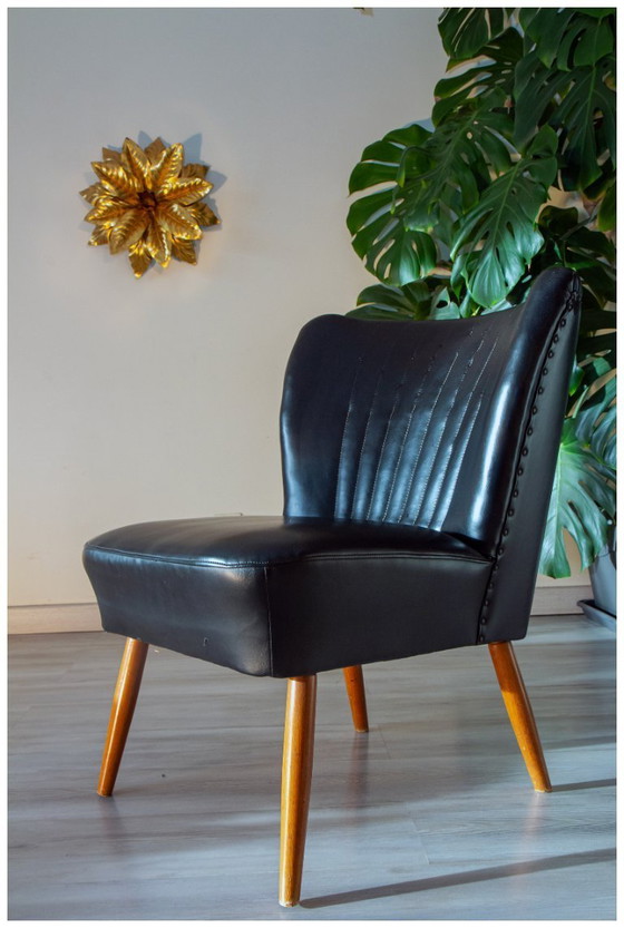 Joli fauteuil cocktail des années 50 en simili cuir noir.