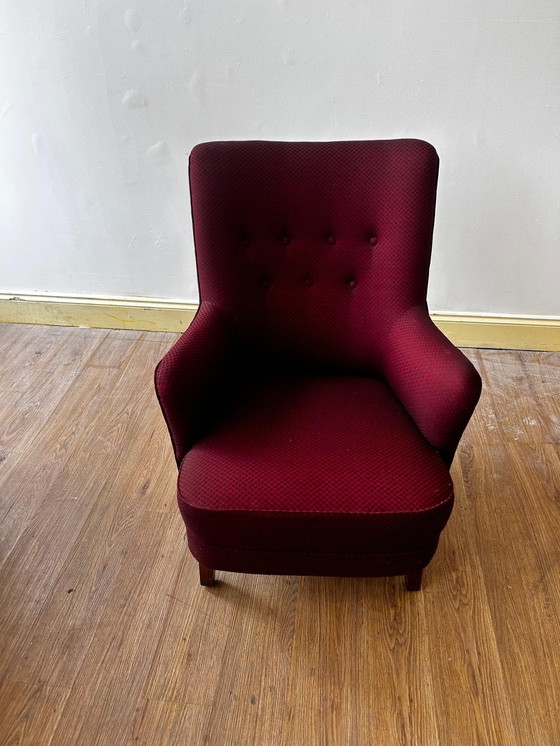 Ce fauteuil danois à haut dossier du milieu du siècle dernier, datant des années 1960, est un meuble classique qui incarne l'élégance et la simplicité de l'époque. Il est doté d'un dossier haut, d'un riche revêtement textile rouge et de solides pieds en bois. Ce fauteuil est parfait pour ajouter une touche de charme vintage à n'importe quel espace de vie.