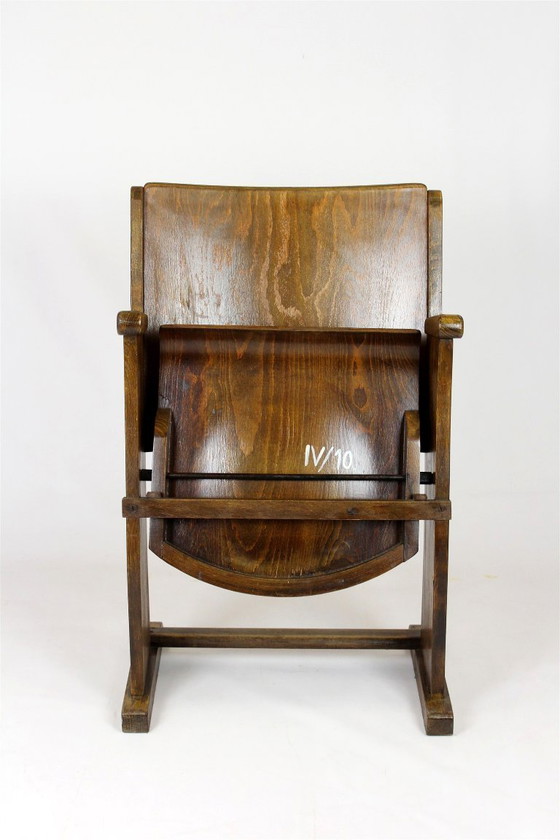 Fauteuil de cinéma vintage TON (Thonet), tchèque des années 1940, siège de théâtre en bois