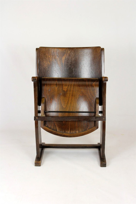 Fauteuil de cinéma vintage TON (Thonet), tchèque des années 1940, siège de théâtre en bois