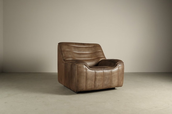 Fauteuil de la série DS-84, produit par De Sede en Suisse dans les années 1970. La série DS-84 représente une phase initiale du design De Sede, où les formes sculpturales, le choix authentique des matériaux et le travail artisanal du cuir étaient au cœur de l'identité de la marque.