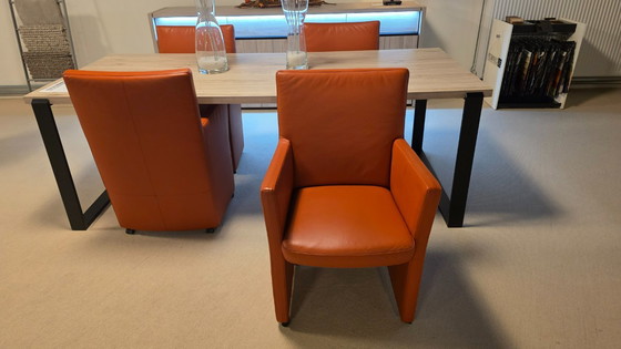 Découvrez l'élégance raffinée du fauteuil Musterring dans une chaleureuse teinte terracotta. Ce fauteuil est l'atout charme de toute salle à manger ou bureau moderne, alliant confort et style.