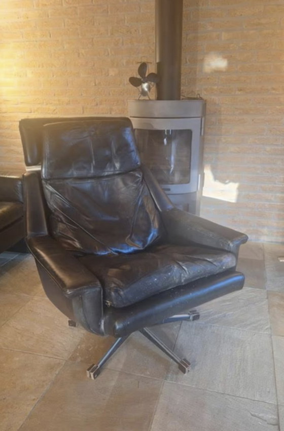 Fauteuil design vintage (1966) ayant connu une longue et belle vie, mais qui a désormais besoin d'un peu d'attention (en d'autres termes : entretien et restauration).