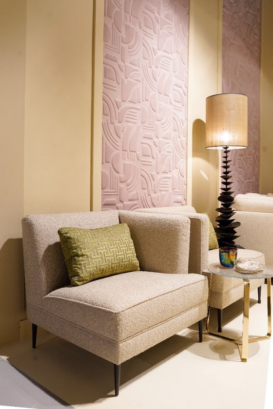 Avec leur tissu Milwaukee aux couleurs vibrantes, dans un beige dessert, ces fauteuils uniques s'intégreront facilement à votre intérieur.