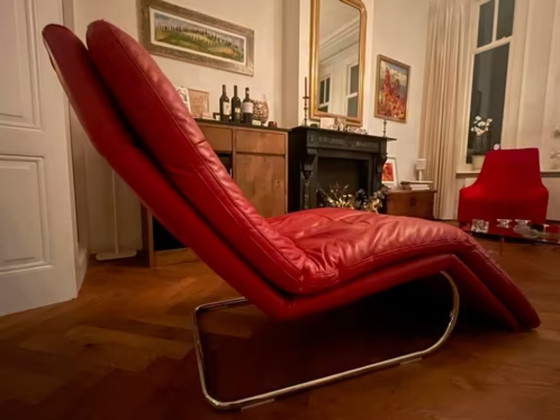Fauteuil inclinable, modèle Musterring, cuir rouge, très bon état