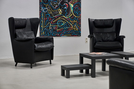 Fauteuil lounge De Sede Club, fauteuil à oreilles, fauteuil en cuir noir