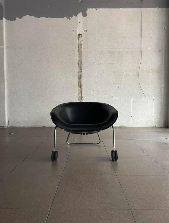 Élevez votre espace avec un chef-d'œuvre de design moderne - le fauteuil Mart, modèle MPGI5. Fabriqué en 2003 par le célèbre designer Antonio Citterio exclusivement pour B&B Italia, cette création exceptionnelle est une véritable incarnation du style, du confort et de l'innovation. La courbure captivante du fauteuil Mart est le résultat d'une mousse de polyuréthane moulée de façon experte et d'un cuir thermoformé exquis. Plongez dans son assise concave, en épousant parfaitement les accoudoirs intégrés, pour une expérience de détente inégalée. L'élégance du revêtement en cuir noir incurvé contraste gracieusement avec le cadre en acier chromé. Qu'il s'agisse d'un espace de vie moderne ou d'un bureau à domicile chic, le fauteuil Mart s'harmonise sans effort avec son environnement. Une fusion de l'esthétique et de la fonctionnalité qui ne manquera pas de faire parler d'elle. À propos d'Antonio Citterio : Les prouesses d'Antonio Citterio en matière de design sont bien connues, et le fauteuil Mart témoigne de sa maîtrise. Actuellement à la tête de la direction artistique de Maxalto, son approche minimaliste en dit long. Il est reconnu pour sa capacité à créer des lignes frappantes et des finitions luxueuses qui redéfinissent l'élégance. Découvrez l'attrait du fauteuil Mart d'Antonio Citterio en personne. Laissez cette création remarquable transformer et élever votre espace en un havre de luxe contemporain où le confort rencontre l'art ! En très bon état !