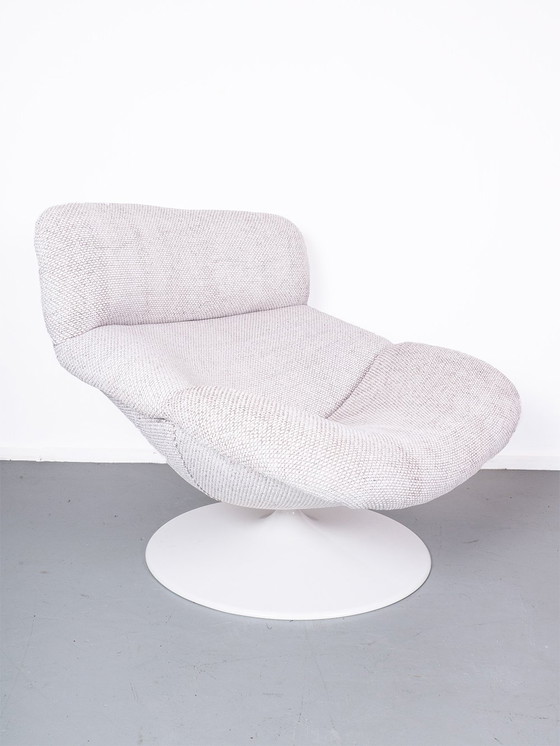 Nouvelle chaise longue rembourrée Artifort, modèle F518, ce modèle n'est plus en production. La chaise a un siège très confortable et peut pivoter sur la base en trompette. 2 chaises en stock, prix par chaise.