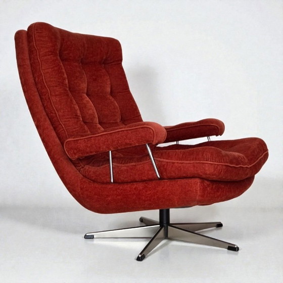 Fauteuil pivotant suédois des années 1970, de la marque Ulferts Sweden, en velours.
