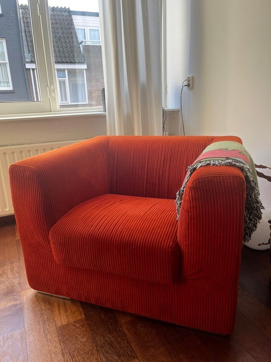 Magnifique grand fauteuil rétro en velours côtelé. Dimensions : 83 cm de long et 90 cm de large.