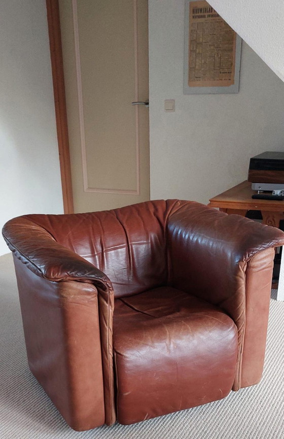 Élégant fauteuil « Hochbarett » de Karl Wittmann pour Wittmann (Autriche), datant des années 1970. Revêtu d'un cuir épais marron à la belle patine, il offre un confort exceptionnel. Wittmann Möbelwerkstätten est réputé pour son savoir-faire et ses exigences de qualité élevées. Ce fauteuil est authentifié.