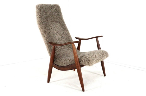 Fauteuil vintage rembourré en tissu poilu, style milieu du siècle