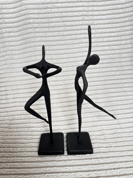 À vendre : un lot de deux figurines vintage IKEA, signées Bodrul Khalique. Des figures abstraites dansantes, en noir mat, au style élégant et moderne.