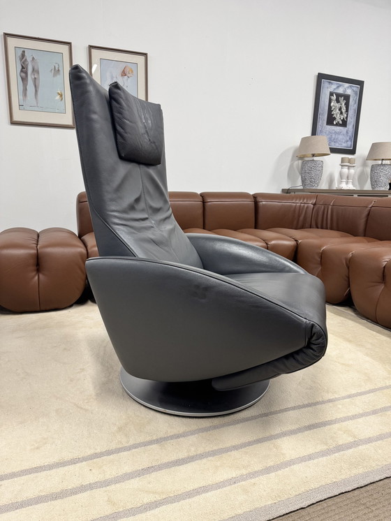 FSM Mate Oreille en cuir Living couleur Umbra . Designer Georg Appeltshauser Le fauteuil de relaxation FSM Mate répond aux exigences les plus élevées en matière d'esthétique et d'ergonomie. Le fauteuil est réglable électroniquement, ce qui vous permet de l'ajuster à la position de votre choix. La télécommande est logée dans les accoudoirs. Le Mate peut être réglé en position de repos active ou passive. La position active se caractérise par un dossier droit et un repose-pieds déplié. En position passive, le repose-pieds est déplié et le dossier est incliné. Le fauteuil Mate n'offre pas seulement un grand confort, il soulage également les jambes et stimule la circulation sanguine. Ce fauteuil est la version avec batterie et peut donc être tourné à 360°.