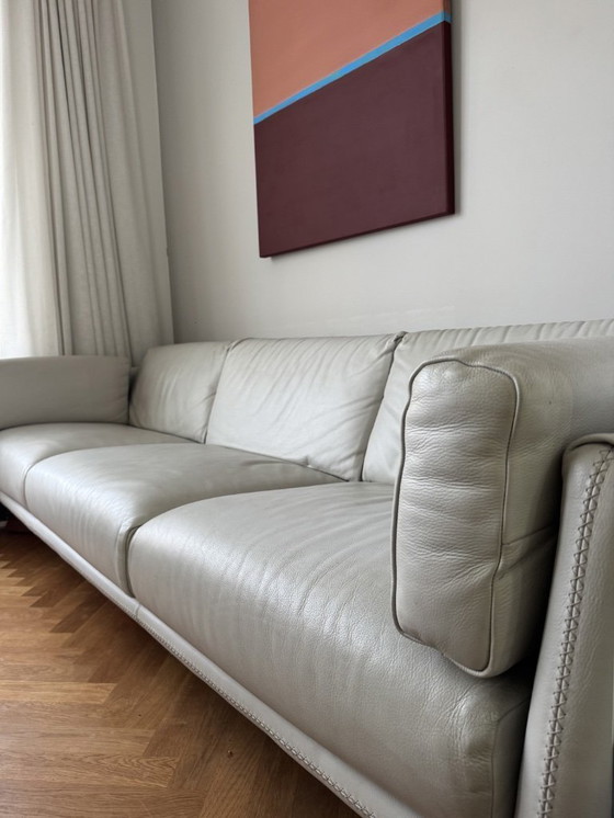 Canapé 3 places Gamma Italia. Ce modèle raffiné, revêtu d'un luxueux cuir crème, offre un confort exceptionnel.