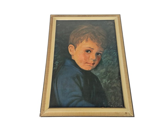 Giovanni Bragolin - Estampe en carton - Garçon à la larme - Vintage - Années 70