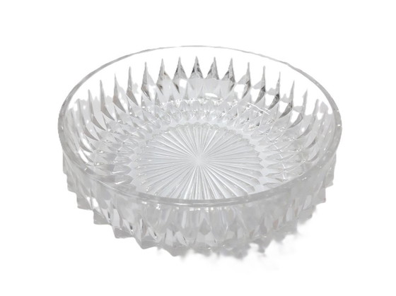 Sa surface est ornée de motifs en losanges sur les côtés, captant et réfractant magnifiquement la lumière, tandis que le motif étoilé rayonnant au fond ajoute une touche de sophistication intemporelle. Idéale pour présenter des fruits, des objets décoratifs ou tout simplement comme pièce maîtresse, cette coupe en cristal allie avec élégance praticité et charme ornemental.