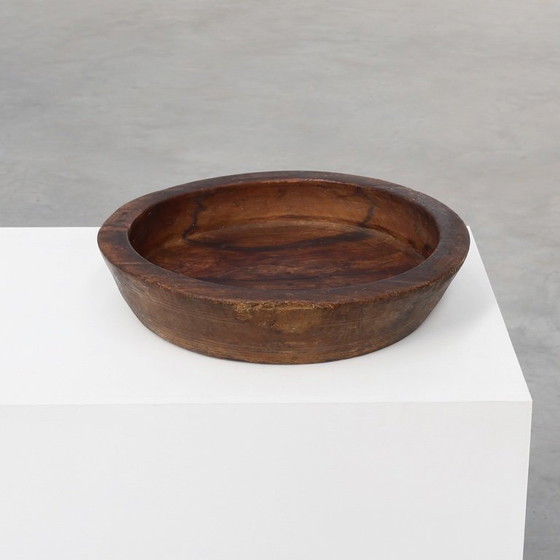 Grand bol en bois massif fait à la main dans le style wabi wabi, France ca. 1950
