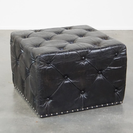 Nous vous proposons ce grand et luxueux pouf/saloon chesterfield carré noir en cuir de vachette. Un pouf en cuir de vachette, également appelé hocker, transforme votre fauteuil déjà confortable en un véritable paradis de la détente. En posant vos pieds sur ce pouf, vous profiterez encore plus de votre moment de repos. Vous souhaitez créer un siège supplémentaire rapidement et facilement ? C'est également possible avec un hocker ! Un hocker n'est donc pas seulement un article qui rend votre moment de repos encore plus confortable d'une manière élégante, il est aussi polyvalent. Remarque : Les dimensions mentionnées dans notre texte publicitaire sont des dimensions indicatives. Les photos font partie de la description. Dimensions : Hauteur : 43 cm Largeur : 62 cm Profondeur : 62 cm Numéro d'article : 31102411