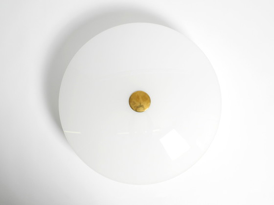 Grand Florian Schulz des années 80, Gela 55, plafonnier rond en laiton-opale avec cinq douilles E27