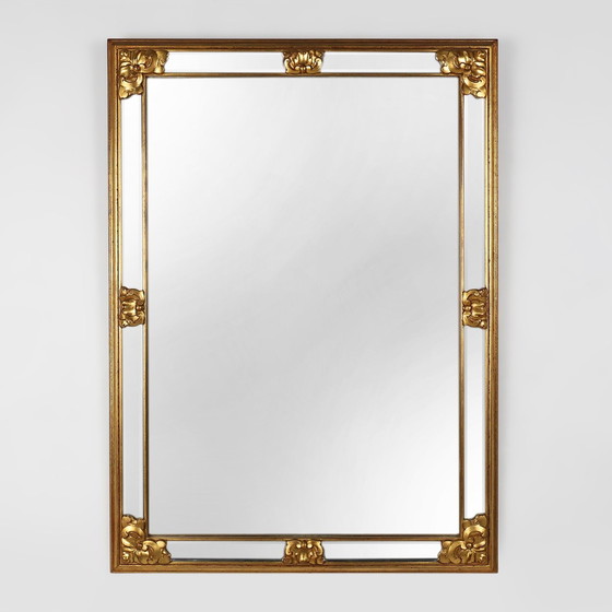 Belgique / 1950 / Miroir / plastique, miroir / Antique / Baroque / Mid-century / Vintage Un impressionnant grand miroir perlé de haute qualité des années 1950. Probablement fabriqué par De Knudt en Belgique. Les clips intégrés sont conçus pour que vous puissiez accrocher ce miroir aussi bien à l'horizontale qu'à la verticale. Le miroir est taillé à facettes et le cadre est orné de riches décorations florales. Un accroche-regard intemporel et élégant qui rehausse tout style d'intérieur.