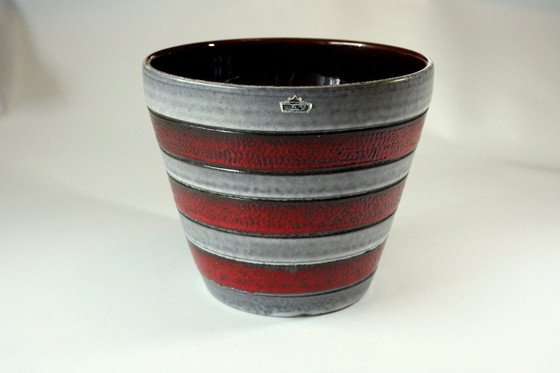 Image 1 of Grand pot de fleurs en céramique, style Fat Lava, gris/rouge - Vintage