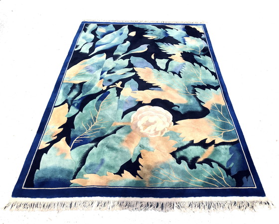 Tapis persan moderniste, épais, en laine. Motif floral aux couleurs profondes et nuancées. Teintes pastel et foncées. Vintage mais en très bon état. Grandes dimensions 200x300 cm.