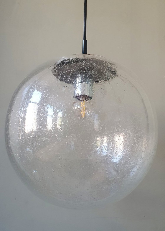 Lampe globe vintage à bulles d'air, grand modèle (30 cm). Ressemble beaucoup aux modèles Peill & Putzler ou Glashütte Limburg des années 1950/60, mais je ne peux l'affirmer avec certitude.