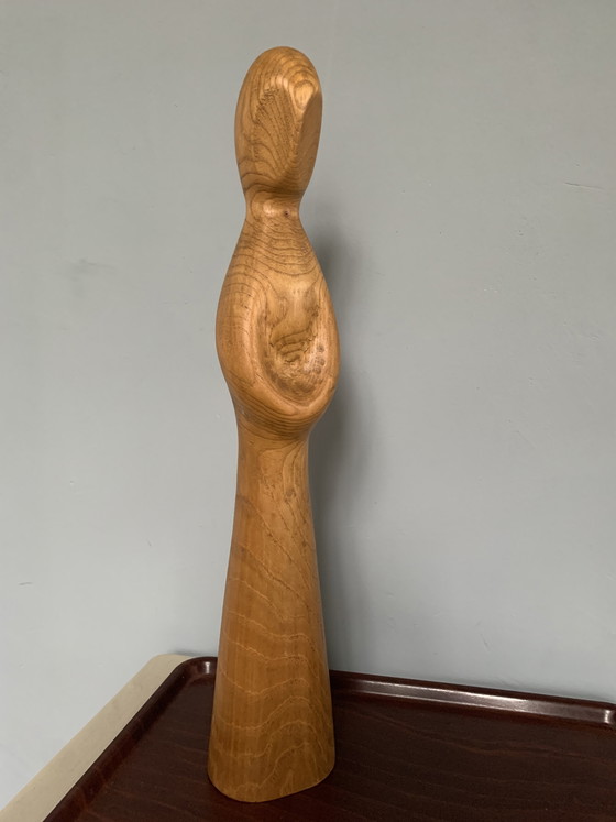 Cette magnifique statue vintage en bois est un exemple de sculpture abstraite, souvent associée au style scandinave. Cette charmante figure humaine, sculptée à la main, se caractérise par des lignes fines et fluides et une forme minimaliste.