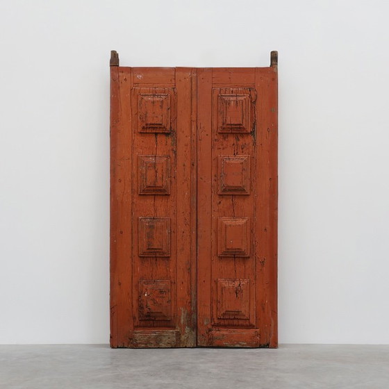 Grandes portes de monastère du 17e siècle en chêne laqué à la terre cuite, Portugal