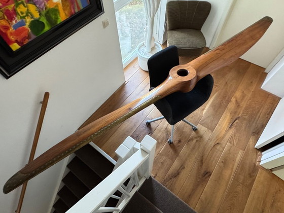 L'hélice était fixée au moteur par le système Rubb Nabe, un système de fixation rapide allemand permettant un changement d'hélice plus rapide à l'avant. Elle ne présente aucun trou à l'avant et quatre trous de fixation à l'arrière, chacun portant l'empreinte du moyeu. Compte tenu de son âge, l'hélice est dans un état d'origine parfait, non restaurée, avec des ferrures en laiton dignes d'un musée. Il ne manque qu'un petit morceau de bois au centre du dos, qui pourrait facilement être réparé.