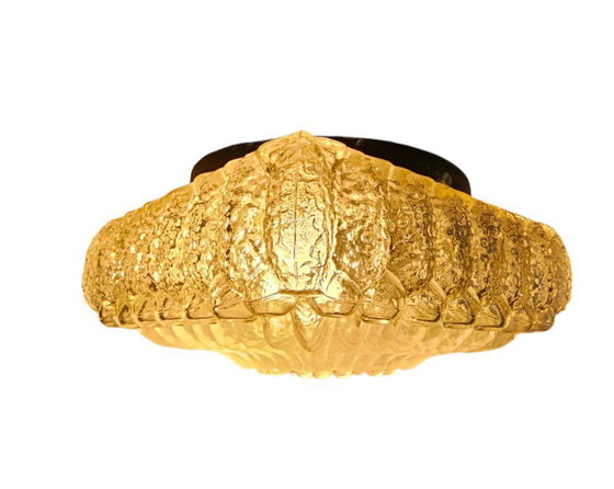 Ce magnifique plafonnier Herda, fabriqué dans les années 1960 aux Pays-Bas, est un superbe exemple du style Helena Tynell. Le verre texturé capte la lumière de façon unique, créant une ambiance chaleureuse et accueillante dans n'importe quelle pièce.