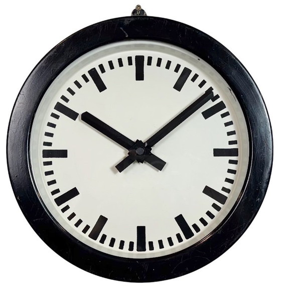 Horloge murale industrielle allemande noire, années 1950