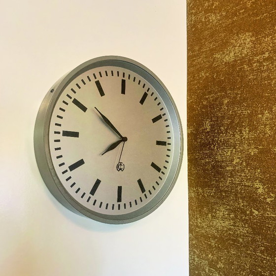 Une horloge murale industrielle robuste qui ornait autrefois les bureaux de PTT aux Pays-Bas.