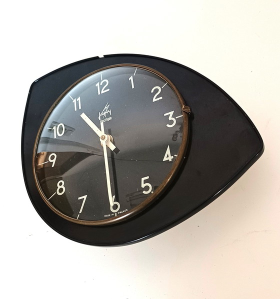 Magnifique horloge murale française des années 1950 par Japy. Décrite dans le livre "Unvernunftiges Design" d'Andreas K. Vetter, cette horloge est un chef-d'œuvre de l'ère MCM. Le mouvement original fonctionne et est en très bon état. Description CIE voir photos.