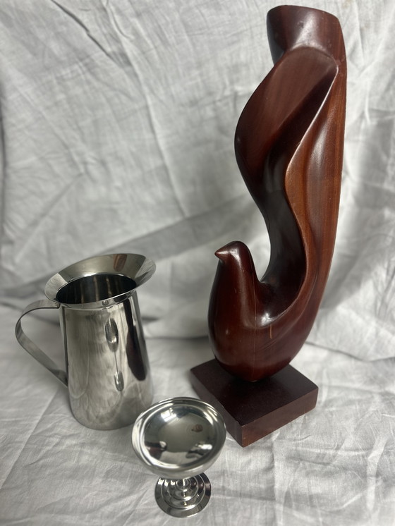 Houten vintage antiek beeld abstrait vogel groot Scandinavisch milieu du siècle