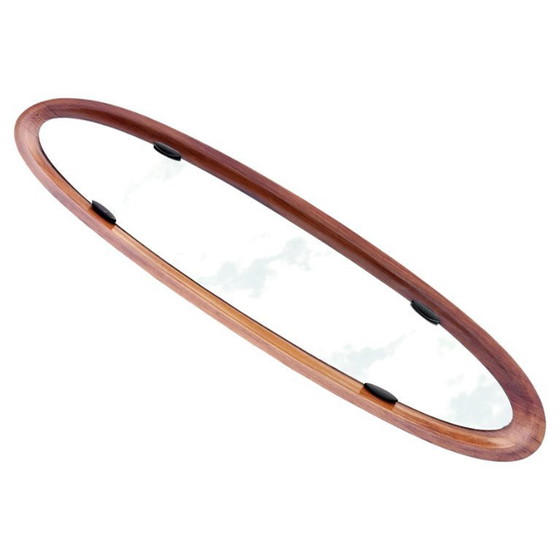 Ce miroir est réalisé dans un élégant cadre en bois de teck courbé, au design minimaliste.