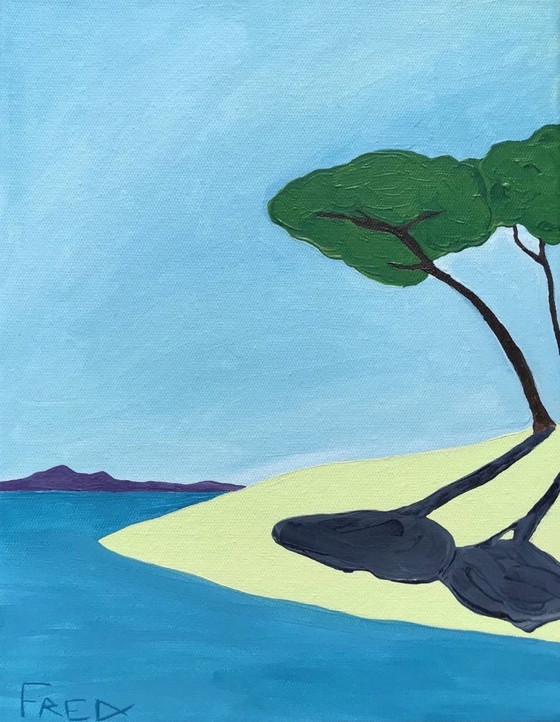 Cette peinture est réalisée par Frédéric Cadiou, un artiste peintre breton contemporain. Ses œuvres sont visibles sur son site internet.