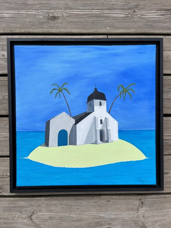 Huile sur châssis entoilé. Format 50x50 cm. Encadrement en caisse américaine. Œuvre unique et originale.