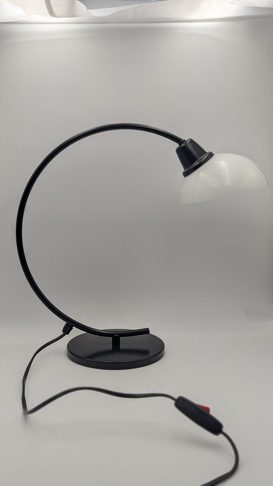 Lot de 2 lampes de table Ikea Harmoni B714 - Design iconique des années 1990 Ajoutez une pièce unique de design vintage à votre intérieur avec ce lot de 2 lampes de table originales Ikea Harmoni B714 des années 1990. Un design minimaliste avec un mélange élégant de métal laqué noir et de verre, parfait pour les amateurs de design rétro et moderne. Matériau et dimensions Structure en métal laqué noir avec abat-jour en verre Hauteur totale : 40 cm Largeur base : 16,5 cm Diamètre abat-jour : 15 cm Hauteur abat-jour : 7 cm État Les deux lampes sont en bon état vintage. Quelques signes d'utilisation sont visibles, comme de légères rayures sur les abat-jours. 1 des fixations est endommagée (voir photo). La lampe fonctionne normalement, mais il manque un morceau de plastique. Les deux lampes ont encore l'étiquette d'origine Ikea en bas - un détail unique pour les collectionneurs. Détails techniques Fonctionne avec une petite douille (E14) Convient pour une lampe jusqu'à 40 W Prise européenne avec un interrupteur Prix et options de vente Les lampes sont vendues comme un ensemble, mais sont également disponibles individuellement. Parfaites pour les tables de chevet, les buffets ou comme éclairage d'ambiance dans le salon. Ne manquez pas cette chance de compléter votre intérieur avec une pièce rare de l'histoire d'Ikea ! Ikea Harmoni, B714, lampe vintage, années 90, design rétro, minimaliste, lampe de table noire, abat-jour en verre, style industriel, design scandinave, classique Ikea, objet de collection, décoration intérieure, lampe de chevet, amoureux du design, éclairage vintage, Ikea d'occasion, douille E14, éclairage d'ambiance, pièce unique