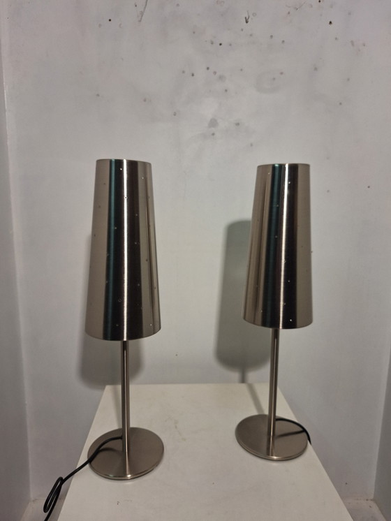 Conçues par Anne Nilsson dans les années 2000, ces élégantes lampes de table Ikea Tallvik constituent un complément sophistiqué à tout intérieur. Avec leur design moderne et épuré et leur finition argentée, ces lampes dégagent un charme intemporel. Elles sont idéales à la fois pour un éclairage fonctionnel et des accents atmosphériques dans votre espace de vie. Conçues par la célèbre Anne Nilsson pour Ikea, ces lampes allient style et fonctionnalité. La finition en métal argenté crée un look moderne et sophistiqué. Parfaites pour être utilisées sur un bureau, une table de chevet ou comme éclairage d'appoint dans le salon, ces lampes de table apportent une touche d'élégance moderne à votre intérieur. (Lot de 2 lampes