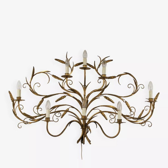 Imposante applique murale par Hans Kögl en métal doré composée de 8 feux avec bobèches et une foisonnante et élégante décoration en épi de blé.