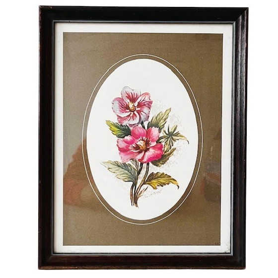 Impression de fleurs sur peinture vintage des années 1960