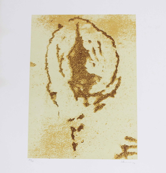 Impression de Klaus Littmann des années 70 Cette lithographie originale a été édité à 50 exemplaires dans un coffret intitulé "Observation". Klaus Littmann est un artiste Bâlois surtout connu pour oeuvre majeure FOR FOREST, la plus grande à ce jour en Autriche, une forêt plantée directement dans un stade de foot, cassant ainsi les frontières entre l’art, l’architecture et la nature. L'impression que nous proposons est numérotée et signée par Klaus Littmann. Dimensions: 50x35cm Partie imprimée 28x21cm Le coffret dont a été tirée cette impression a été sauvé d'une maison d'artiste qui allait être détruite. Le coffret étant abîmé, nous sélectionnons et vendons les gravures à la pièce. Notez donc des traces sur la partie qui encadre l'impression. Des défauts qui pourront facilement se dissimuler avec un passe-partout. CF PHOTOS D'autres impressions de cet artiste sont à venir dans la boutique. Expédiée roulée en tube.