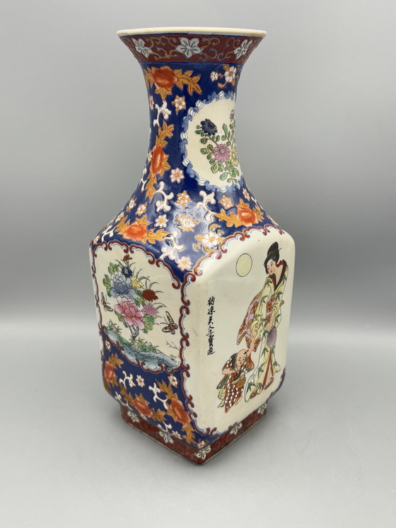 Un très beau et très grand vase japonais Les mots ne sont pas nécessaires pour que ce vase attire l'attention dans votre intérieur. Dimensions Hauteur 37 cm Largeur 15-15 cm Les photos donnent une image claire de la qualité et font partie de la description.