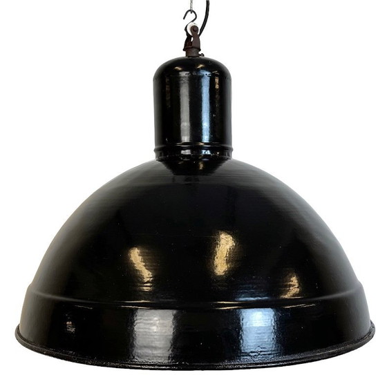 Industrial Black Enamel Factory Pendant Lamp, 1950s