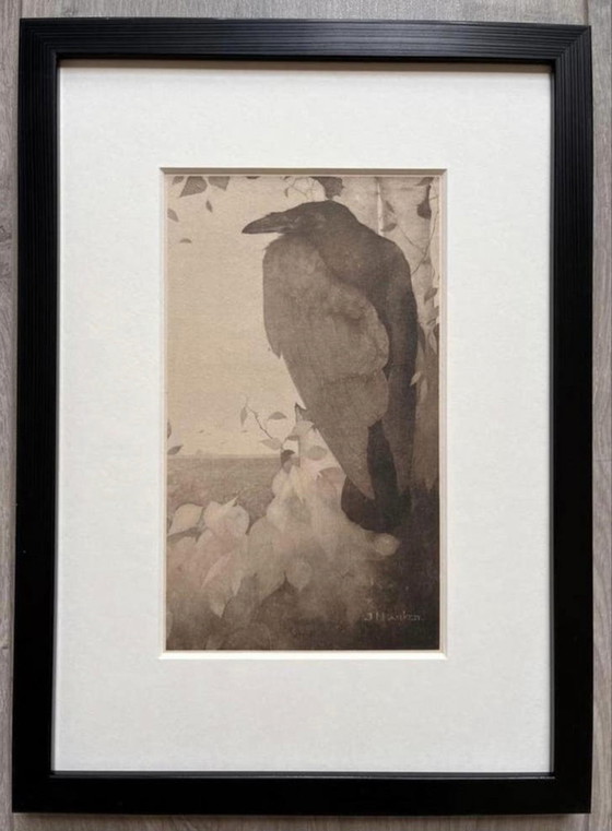 Héliogravure originale « Corbeau dans un bouleau », 1923